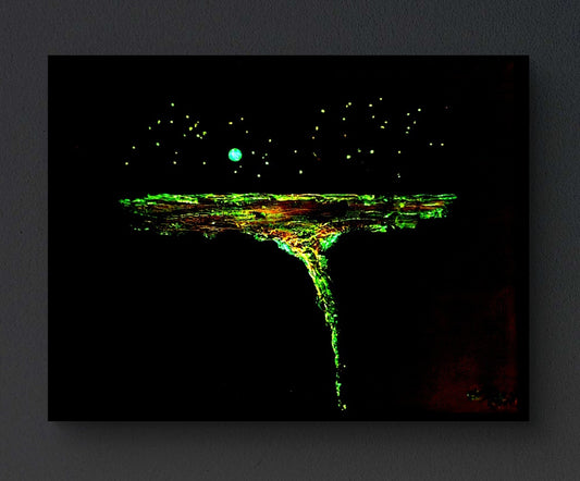 Dreams To Reality Collection - Medieval Moonlight Original 30x40 Acrylic on Raised Cotton Canvas, Textured, Illuminated Glow Effect, Archivable Satin Finish