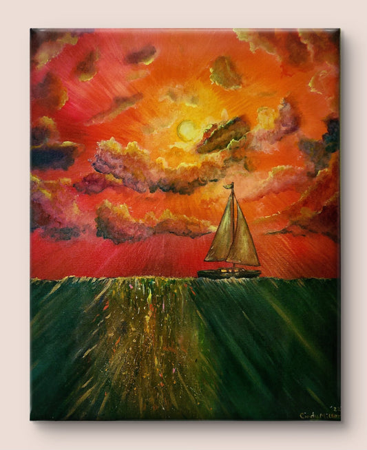 Dreams To Reality Collection -Sunset Sail Original 16x20 Acrylic on Raised Cotton Canvas, Archivable Gloss Finish